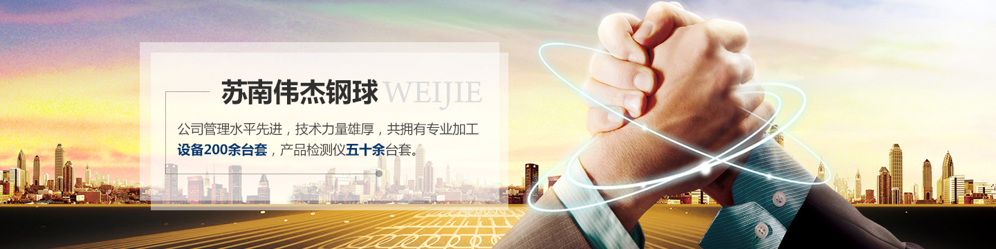 常州市蘇南偉杰鋼球有限公司 (原武進市蘇南鋼球廠)始建于一九八九年,是一家專業配套軸承和自行車及化工、電子行業鋼球的生產廠家,目前全廠占地1.8萬平方米,分軸承鋼球生產線和碳鋼球、不銹鋼球生產線三個廠區,現有專業生產鋼球的各種設備近200余套,年產軸承鋼球30億粒,碳鋼球100億粒,不銹鋼球80億粒。